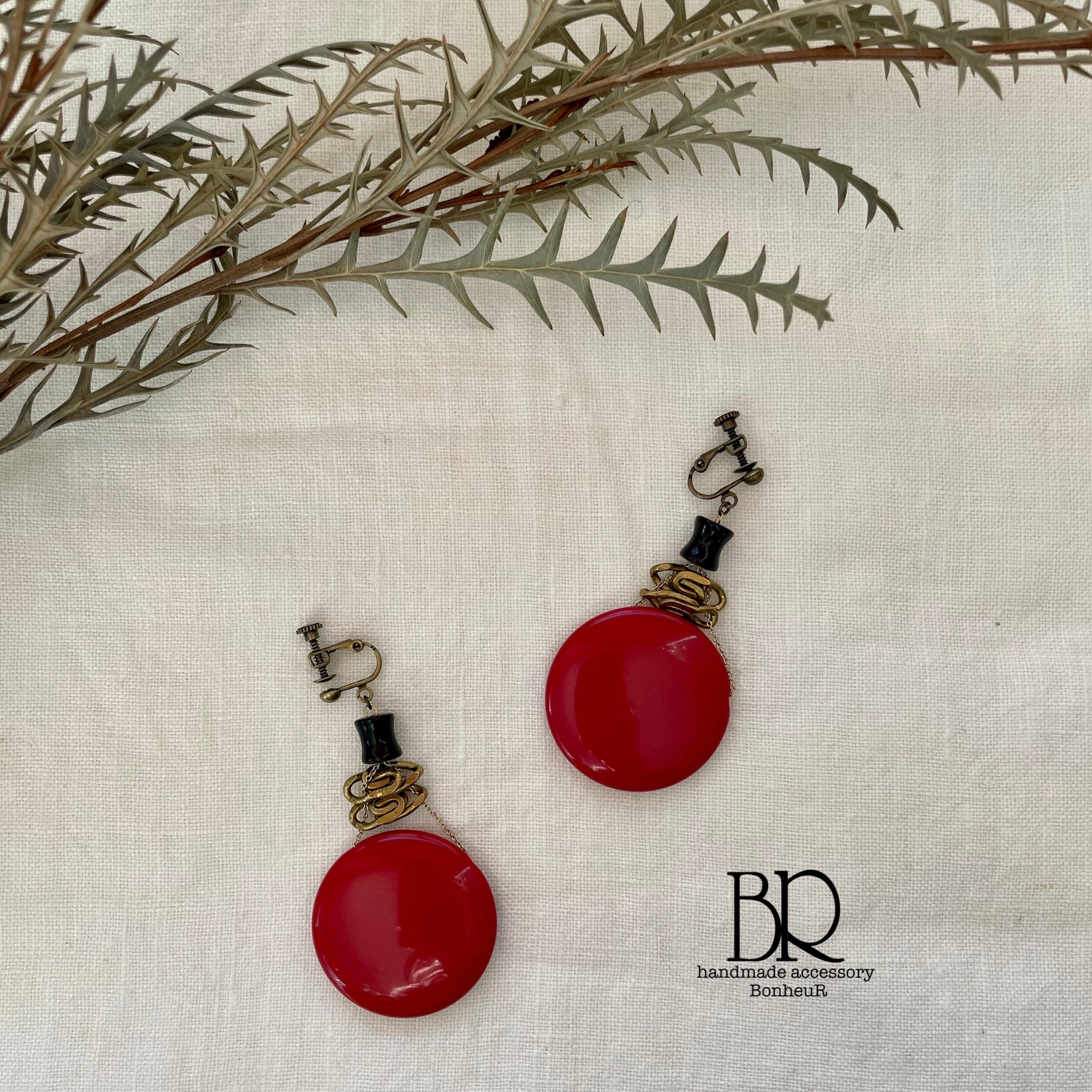 雑誌掲載のピアスはsold outなので赤のヴィンテージを意識してまた違う物をつくってみました。